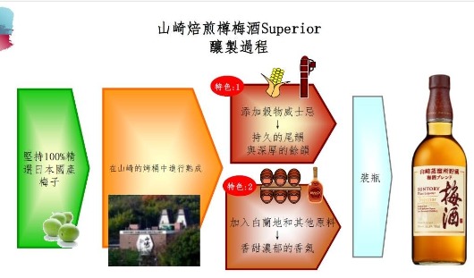 使用梅酒界中之首南高梅,並採用釀製過威士忌的美國白橡木桶進行熟成,讓山崎梅酒香氣豐富濃郁且保有梅子獨特微甜口感。