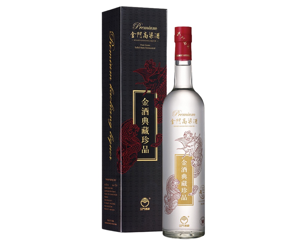 典故:『金酒典藏珍品』於2016年首次參加世界烈酒競賽,在譽為酒界最具權威的『舊金山世界烈酒競賽』中,獲得所有評審一致最高分,榮獲最高品質的雙金獎牌(Double Gold Medal),展現金門酒廠傲人的釀酒工藝已臻世界頂峰。