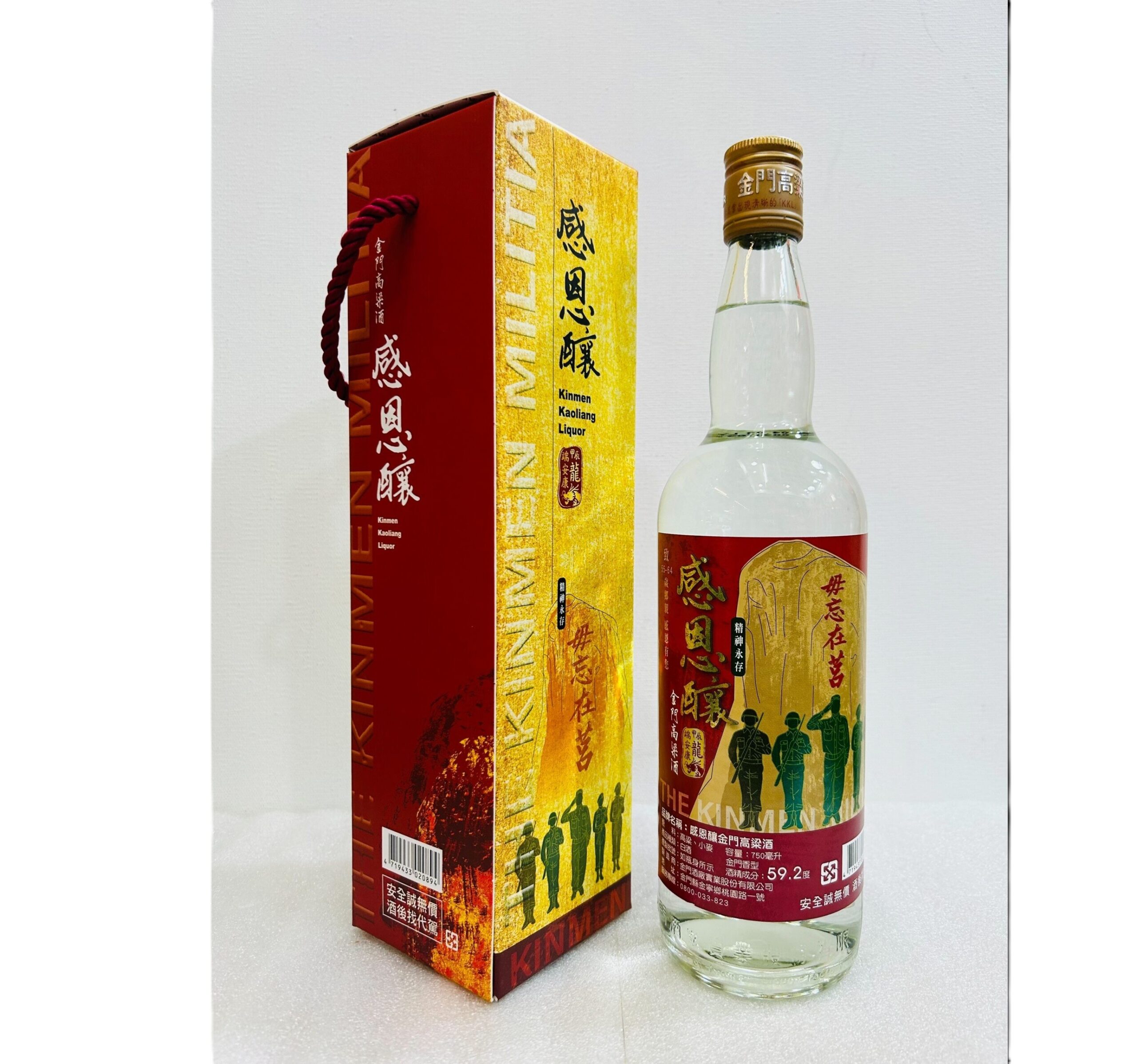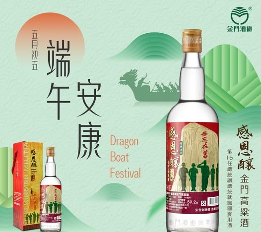 金門酒廠為感念在金門戰地政務時期,感謝一群犧牲奉獻的人們,特別在今9月1日推出59.2度感恩釀金門高粱酒(0.75L),酒標設計更以「毋忘在莒」為標誌。金酒董事長謝世傑表示,59.2度感恩釀金門高粱酒(0.75L)是一瓶充滿無限「感謝」佳釀,感恩這群人犧牲、貢獻,酒標設計以最具代表性「毋忘在莒」為標誌,以軍人保家衛國英勇之姿剪影,致敬那非常時期時代。