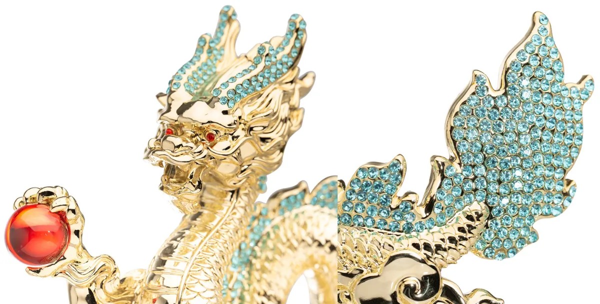 「金龍」自古為華人文化中代表尊榮、權勢與守護的祥瑞神獸,是榮華富貴的象徵;而「聚寶」則寓意財富匯聚、福氣盈門,整體造型喻意集天地財氣於一身,廣納四方之寶、催旺事業運勢,步步高升、財富亨通。
